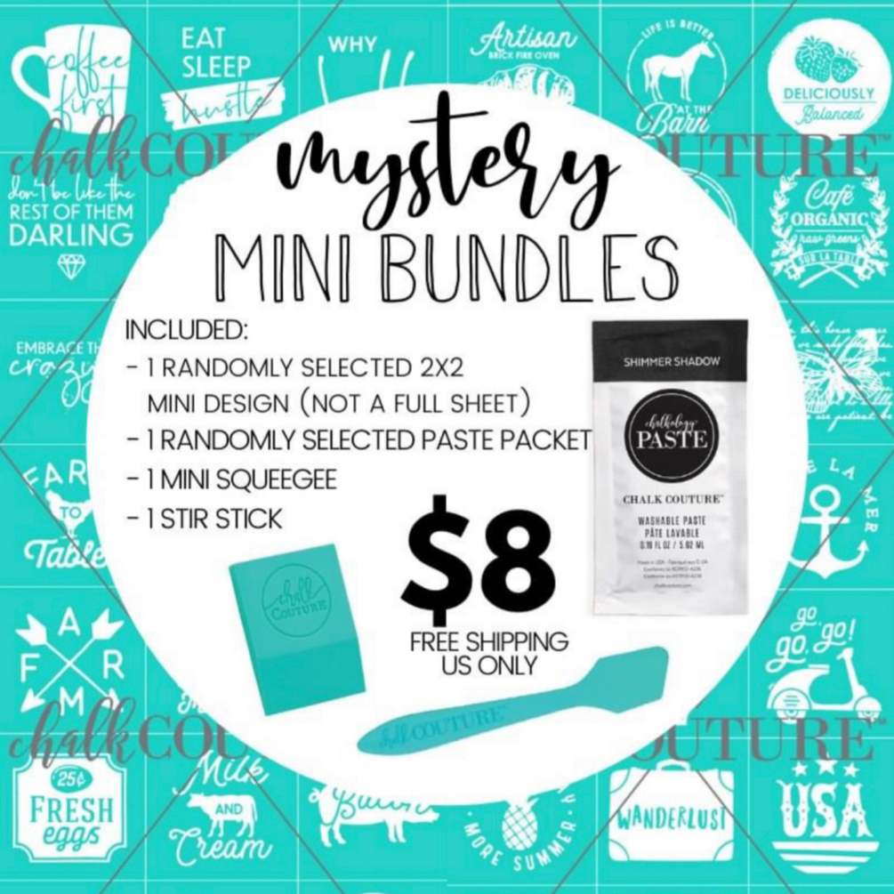 • One randomly selected 2x2” silkscreen transfer • One randomly selected paste packet • One mini squeegee • One stir stick • How To instructions